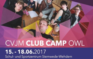 Vom 15.-18. Juni (über Fronleichnam) geht es mit vielen anderen Jugendlichen aus ganz Ostwestfalen zum ClubCamp nach Stemwede! Anmeldungen dazu gibt es jetzt im CVJM-Haus oder im Download-Bereich!