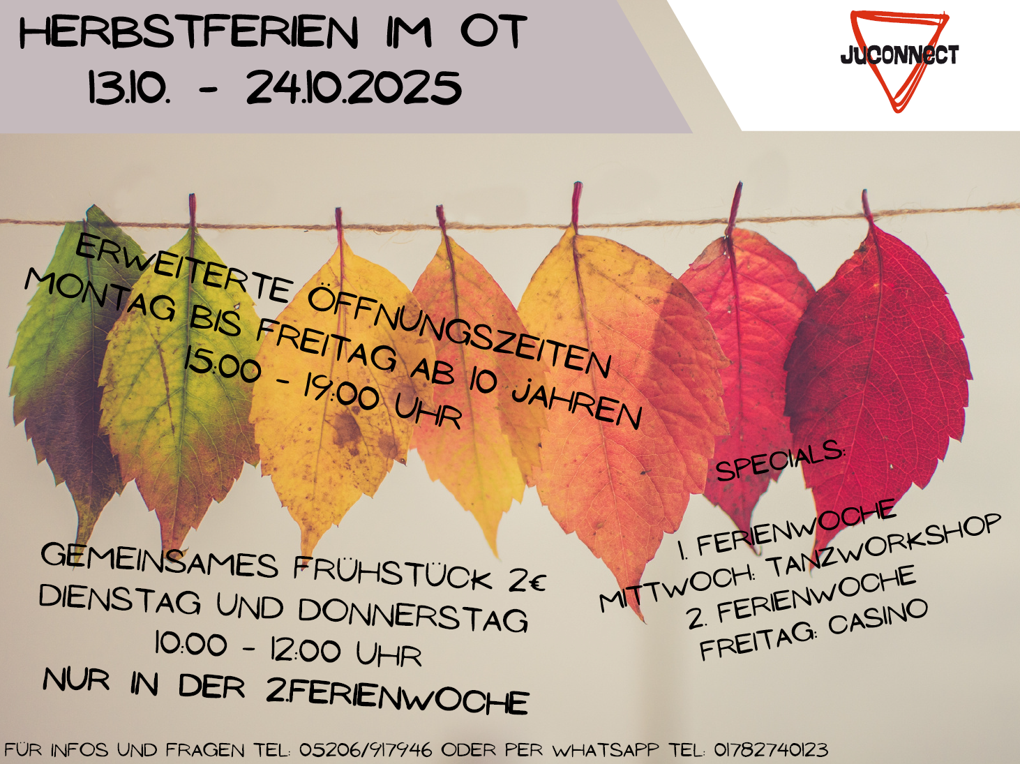 13.10. - 24.20-2025 Herbstferien im JuConnect Erweiterte Öffnungszeiten von 15.00 - 19:00 Uhr - Mo bis Fr Frühstücksangebot am DI und DO [...]